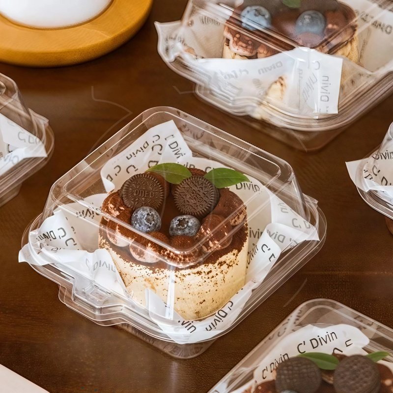Поместите десерт в упаковку и закройте крышку.