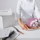 Придайте коробке форму, поместите десерт внутрь и закройте крышку.