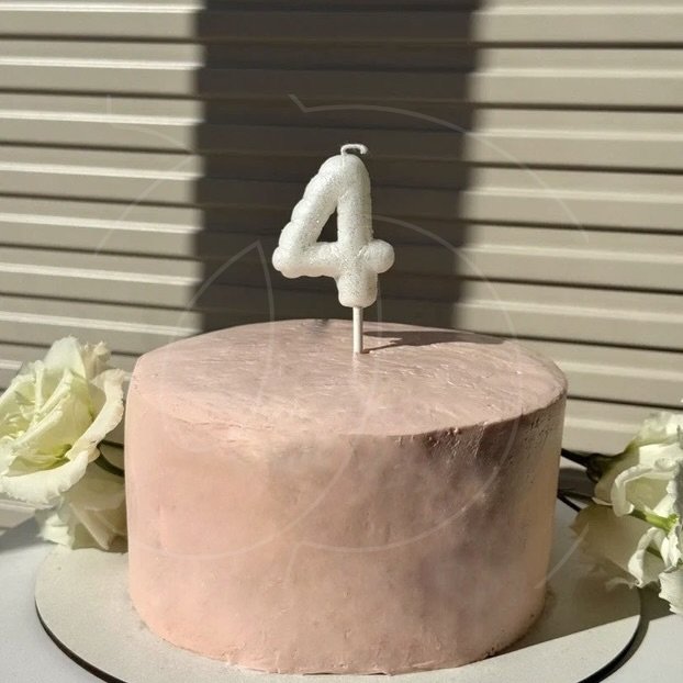 Доставка Свеча декоративная Цифра "4" Воздушный шарик Белый с блёстками из магазина в вашем городе: