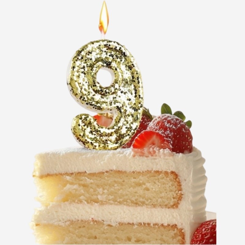 Свеча декоративная Цифра "9" Золото пайетки