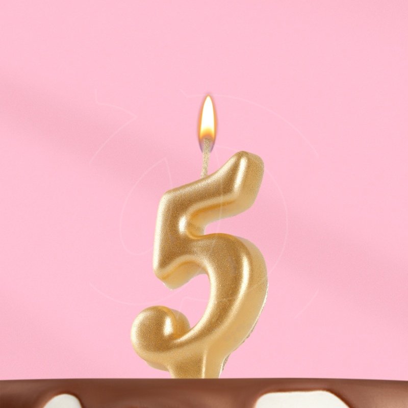 Доставка Свеча декоративная овальная "Цифра 5" Золотая из магазина в вашем городе: