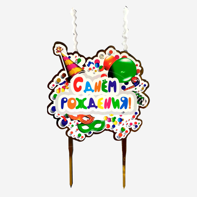 Доставка Свеча-топпер декоративная акриловая "С днём рождения" из магазина в вашем городе: