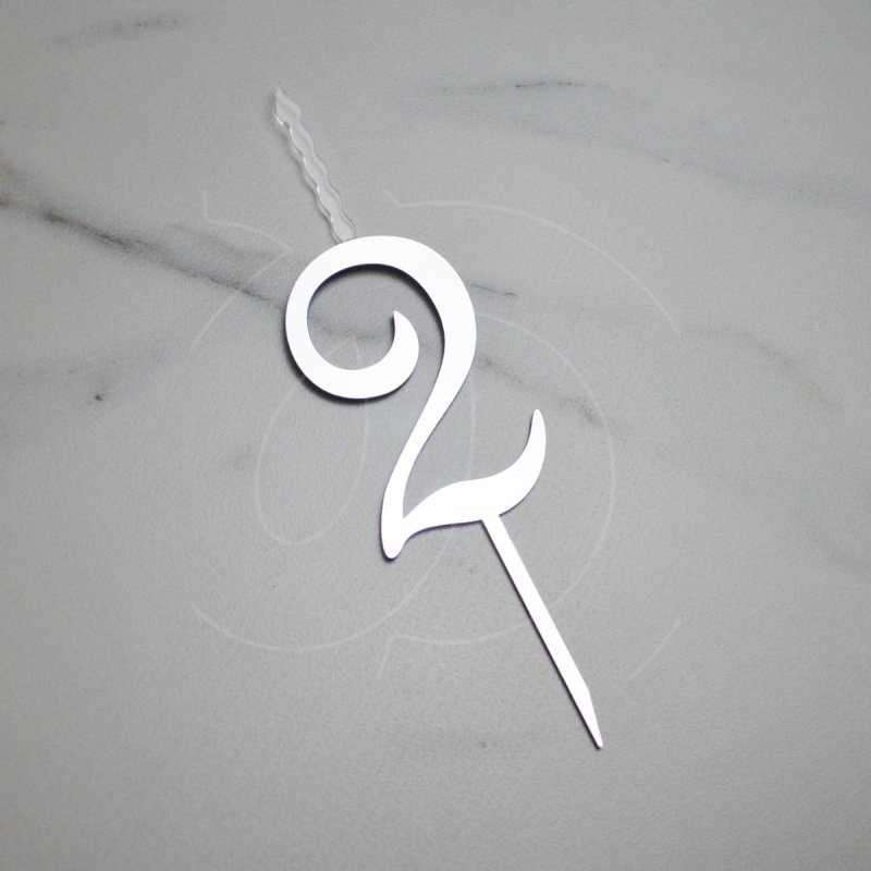 Свеча-топпер декоративная акриловая Цифра "2" Серебро