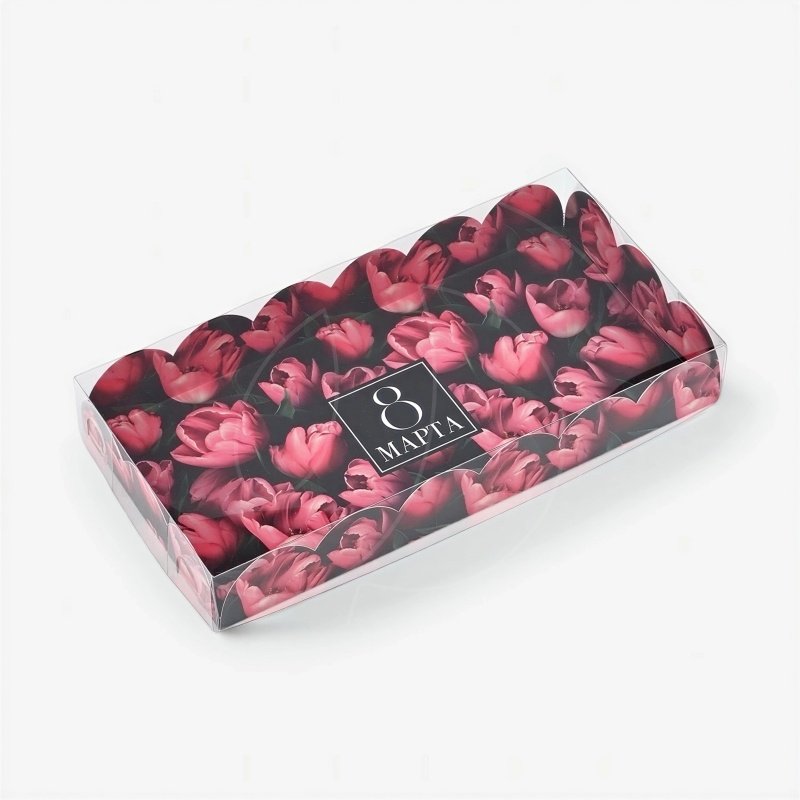 Коробка для сладостей с пластиковой крышкой "8 Марта" 10,5х21х3 см